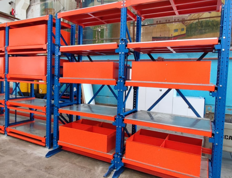 Отправьте заявку, чтобы узнать цену на изготовление стеллажей с выдвижными лотками на заказ по индивидуальным размерам с доставкой с завода производителя по городам Курганской области и России.